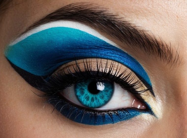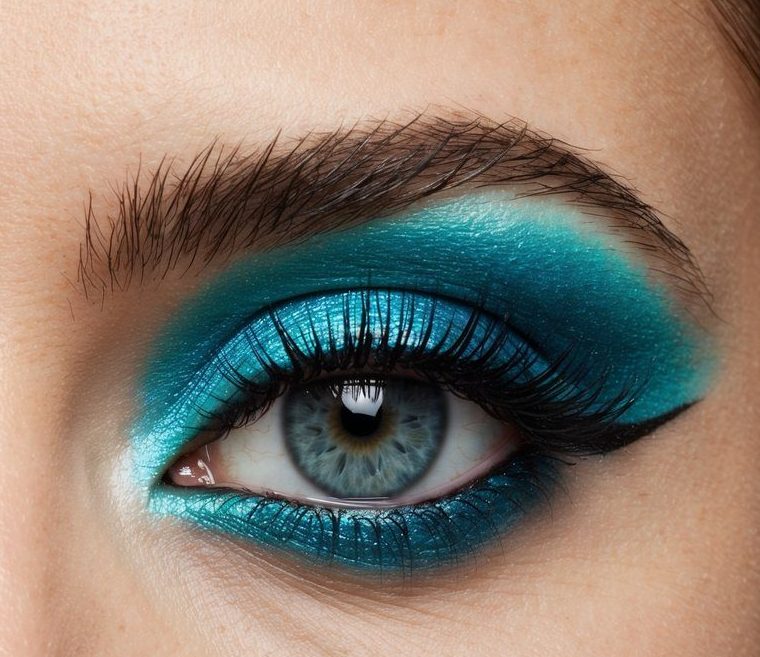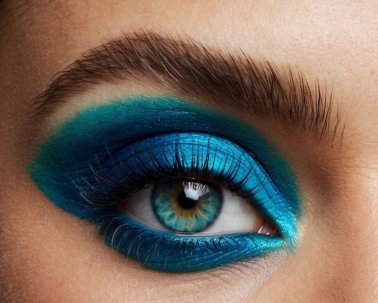 A vibrant electric blue eye creates a bold, eye-catching look that’s sure to turn heads. This daring style combines intense cobalt shades with subtle shimmers for a stunning, dramatic effect.