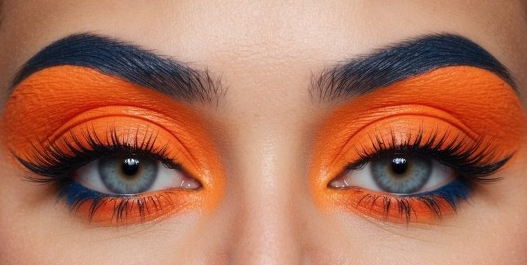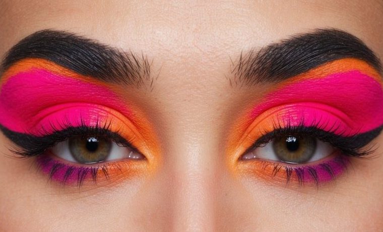 Vibrant pink and orange eye makeup creates a bold, summery look that’s sure to turn heads. Blend a bright coral orange on the lid and sweep a hot pink into the crease for a fun, tropical vibe. Add winged liner and fluttery lashes to complete this dazzling color combo that screams confidence.