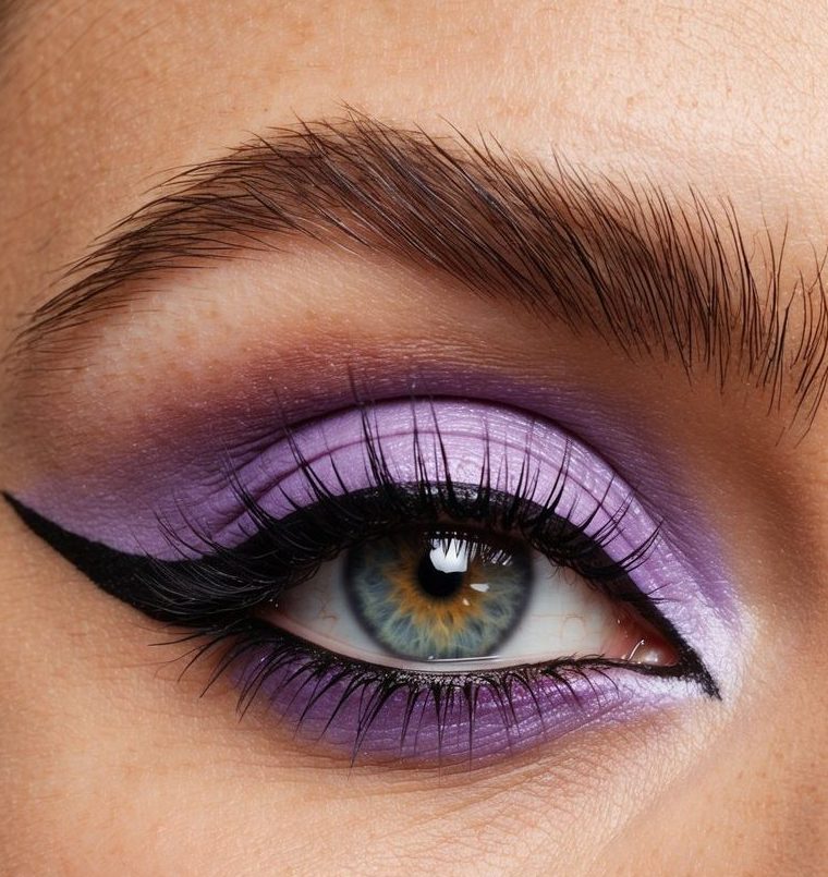 A dreamy lavender line hovers delicately above the lash line, creating an ethereal floating effect that’s both whimsical and eye-catching.