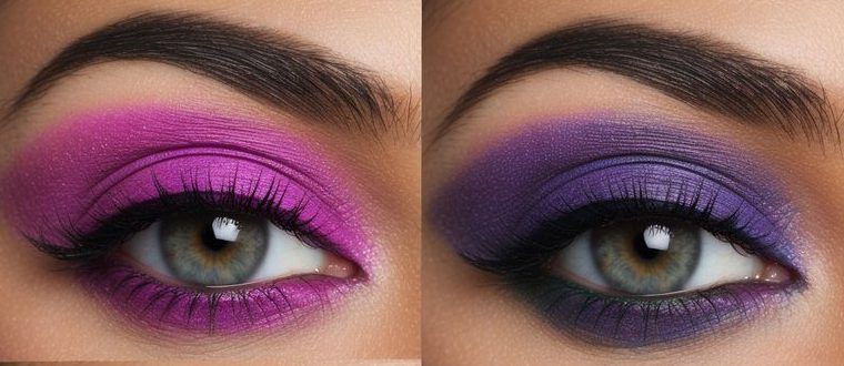 Dazzling violet hues create a mesmerizing prism effect, transforming eyes into shimmering gemstones. This eye-catching look plays with light and shadow for a truly magical gaze.